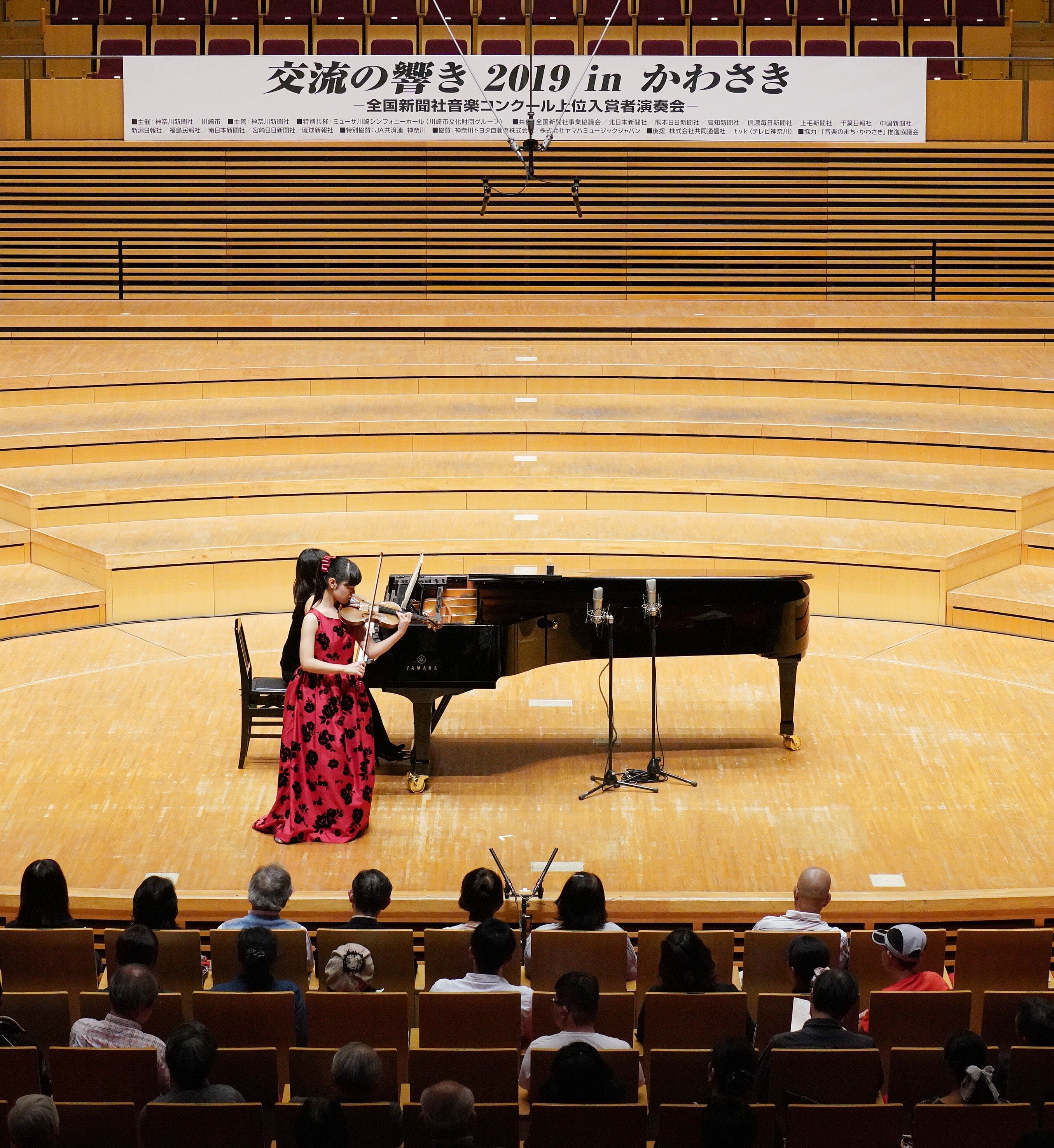19日に開催をした「交流の響き2019」では「かなコン」代表でヴァイオリン部門県知事賞の小島孝恵さん他13人の人が全国からミューザ川崎に集い、それぞれの地域の代表として演奏を披露されました。これまでも福島が東日本大震災、熊本が熊本地震、広島が西日本豪雨などで甚大な被害を受ける中、出演者たちは健気に川崎に来られて地元の惨状や避難されている人たちの心情などをお話されていました。