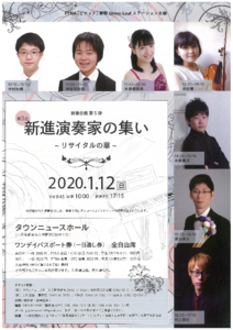 ピアノの入賞者のお二人(神宮司悠翔さん、米満希咲来さん)さんは今年の1月に山手芸術祭りに出演され、来年1月12日(日)に「新進演奏家の集い」(小田急線「東海大学駅」そばのタウンニュースホール)に出演されます。