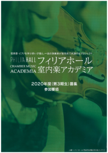 本日(8月17日)手元にフィリアホールさんが行っている「室内楽アカデミア」の参加要項が届きました。小学校3年生以上の弦楽器・ピアノ奏者を対象とした室内楽演奏のプロジェクトで、今回で3回目となります。このプロジェクト以前も別の名称で小中学生が室内楽を学ぶ機会を設け、「アカデミア」のスタイルで継続されました。「かなコン」入賞者が大勢参加していることもあって私も2度演奏会を拝聴しましたが、コンクールや協奏曲を弾く大がかりなコンサートとは違った、ゆったりと時間が流れる演奏は他では味わえないものです。伸び盛りの年代にしっかりした講師陣から連続した指導を受けることはとても有意義な経験になると思います。