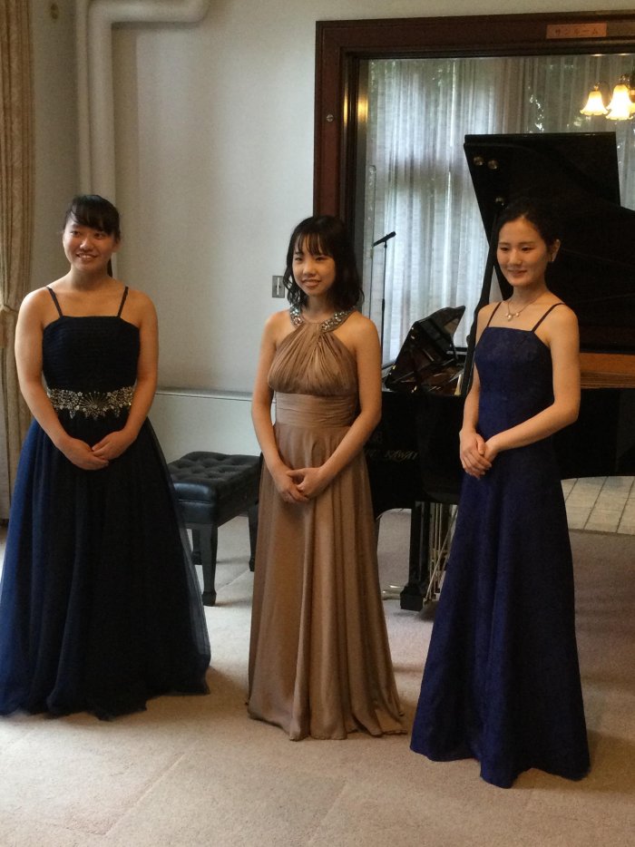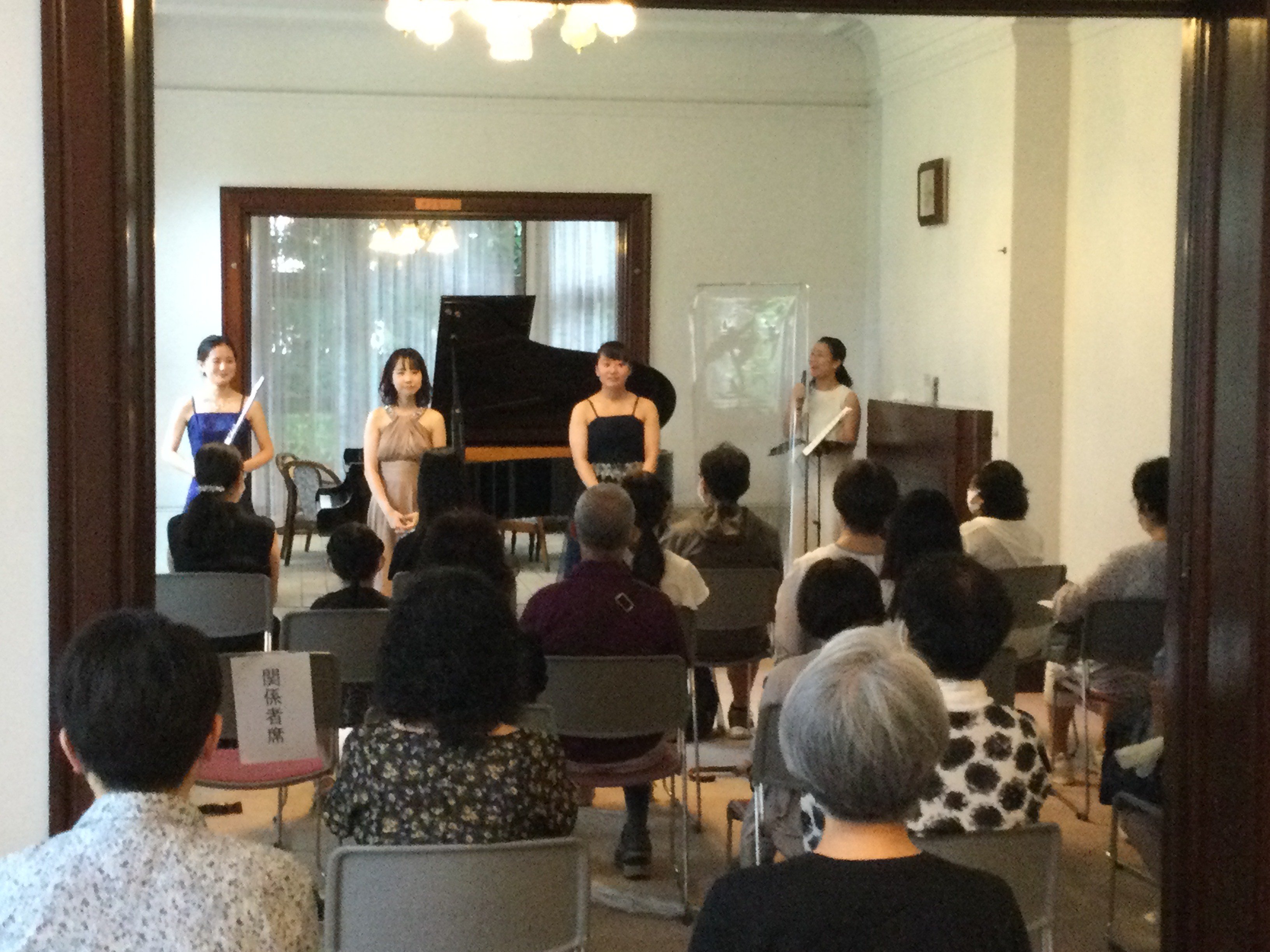 イギリス館サマーコンサートに出演した(左から)石井来実さん(ピアノ)、清水里彩子さん(ヴァイオリン)、吉村由望さん(フルート)