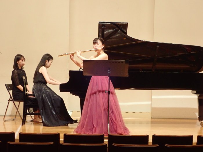 今回はこの新春チャリティーコンサート以外にも新しいコンサートを開催しました。12月4日に旭区民文化ホール「サンハート」の音楽ホールで行った「ジュエルコンサート」には入賞者7名に出演いただきました。顔ぶれはユースピアノ部門から和田なごみさんと小原広夢さん。ヴァイオリン部門からは中谷哲太朗さんと小林悠さん。ピアノ部門から本多伊織さんと坂口由侑さん。そしてフルート部門からはトリを飾っていただいた鈴木菜月さん。